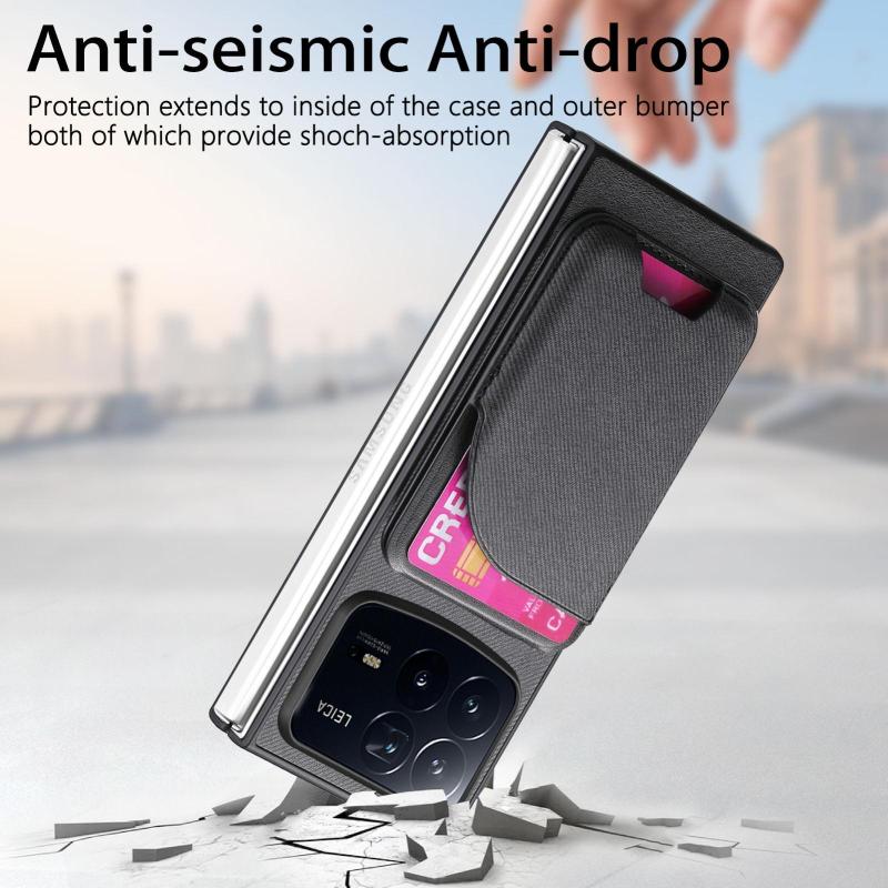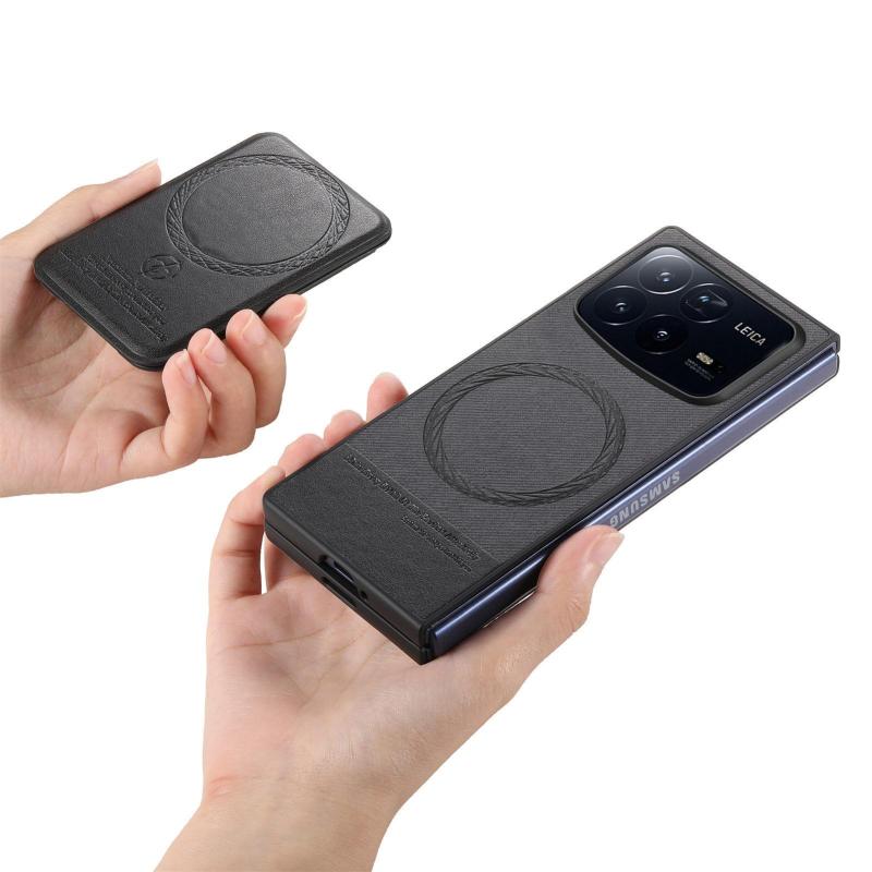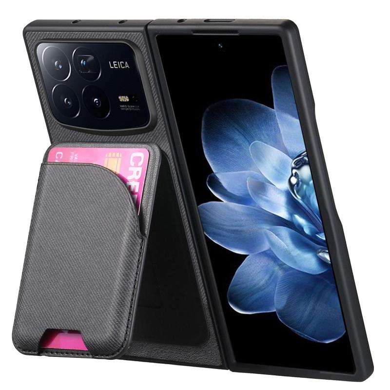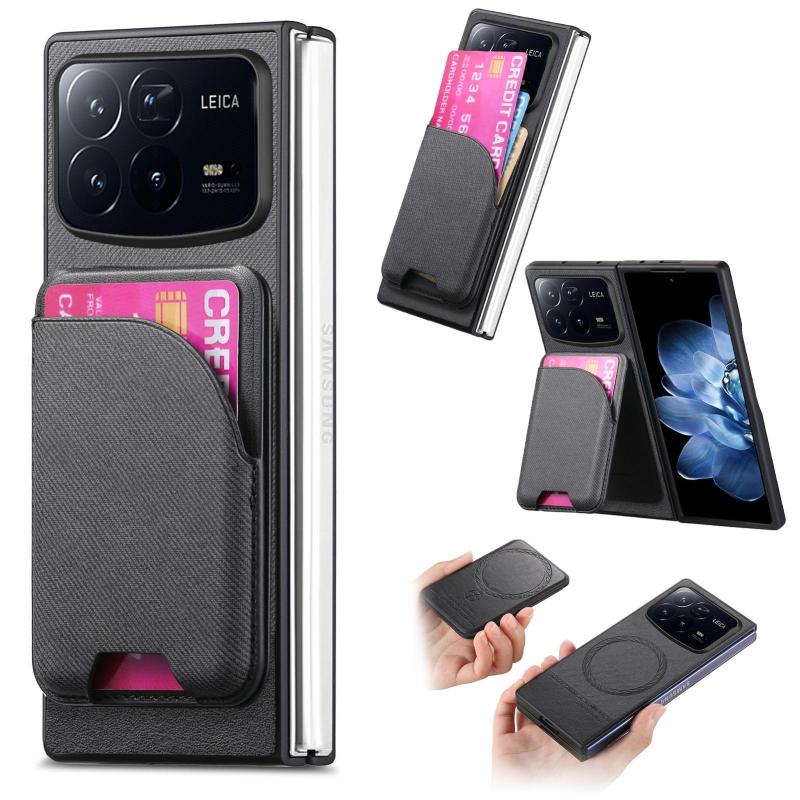 For Xiaomi Mix Fold 4 Twill Fabric Leather Skin Card Bag Magnetic Back Phone Case(Black)