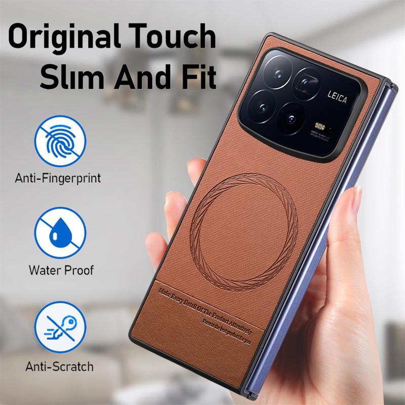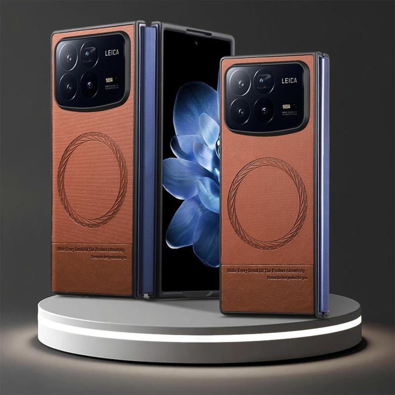 For Xiaomi Mix Fold 4 Twill Fabric Leather Skin Magnetic Back Phone Case(Brown)