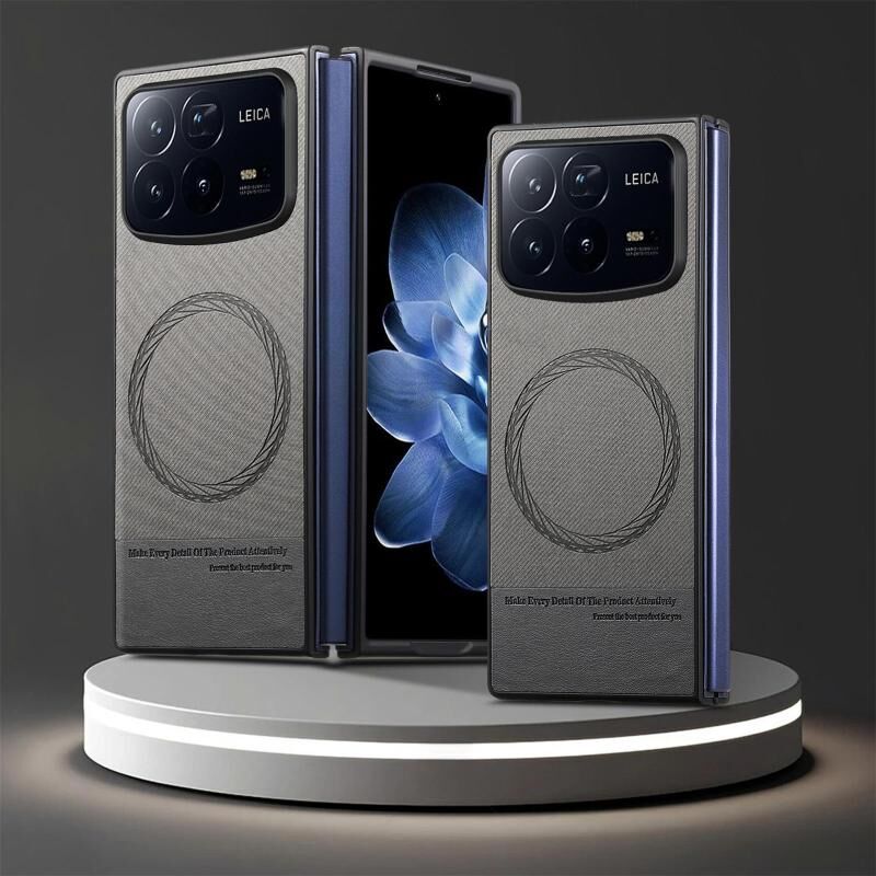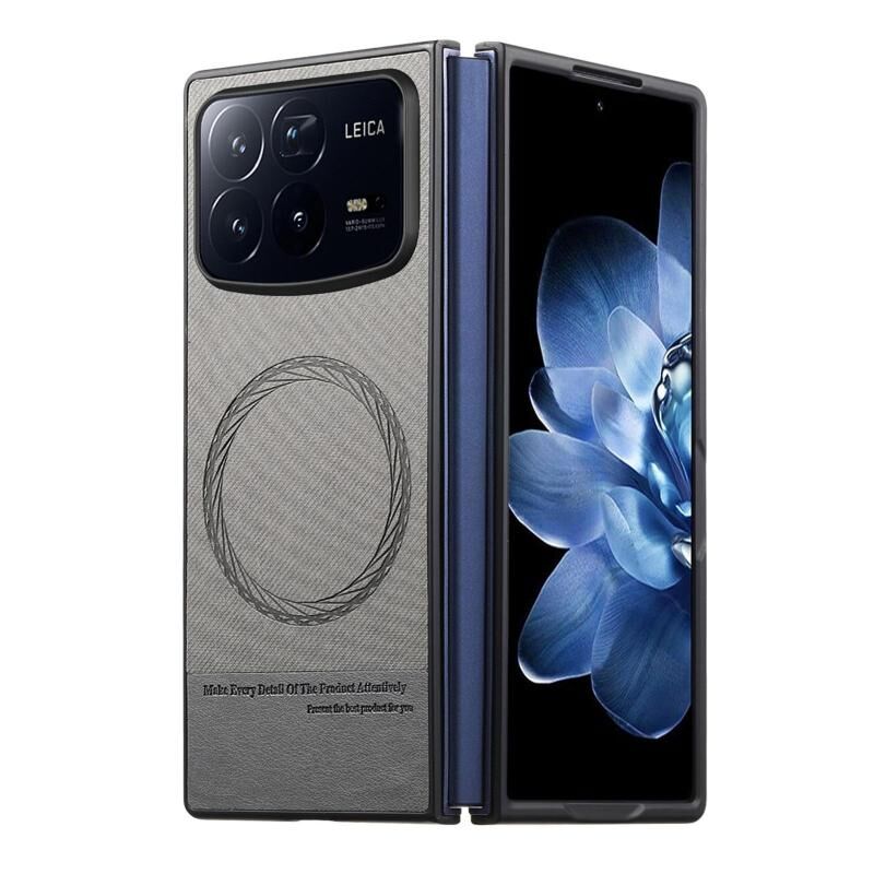Θήκη τηλεφώνου Xiaomi Mix Fold 4 με μαγνητική πλάτη, από δέρμα με υφασμάτινη υφή Twill (Γκρι)