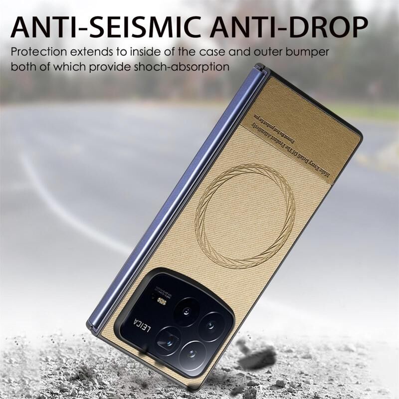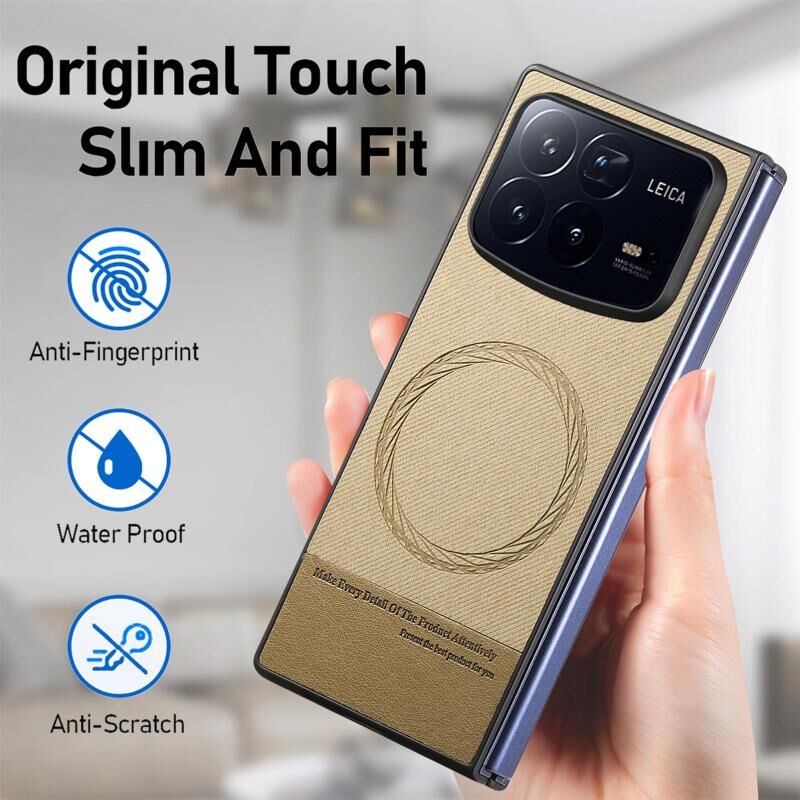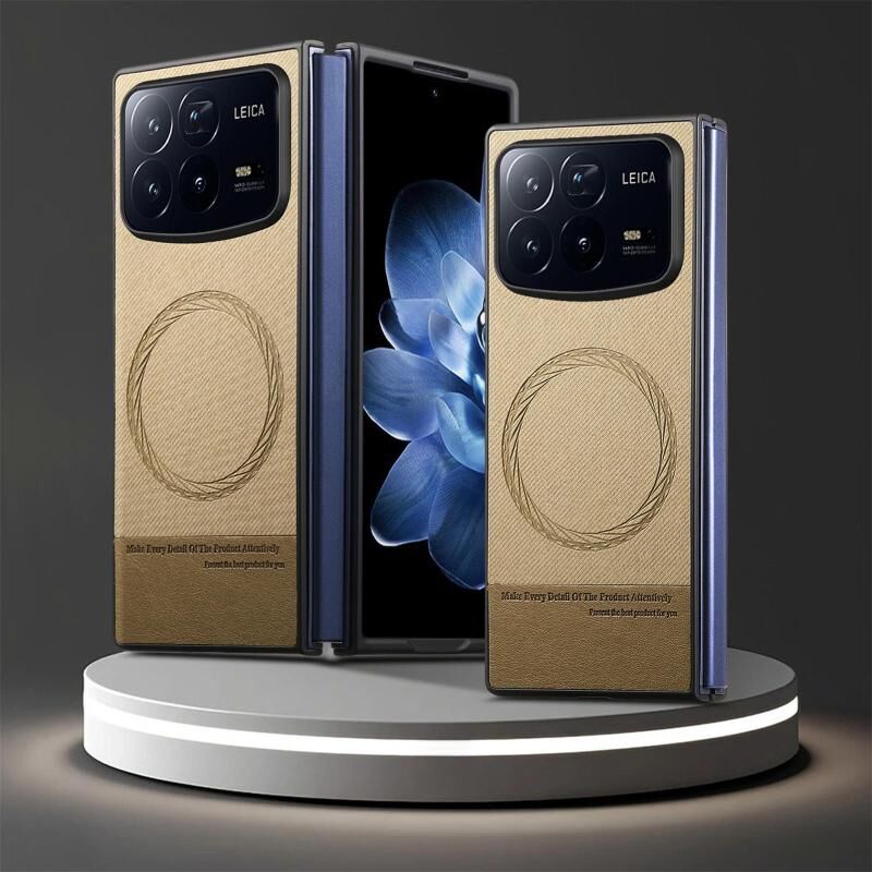 For Xiaomi Mix Fold 4 Twill Fabric Leather Skin Magnetic Back Phone Case(Khaki)