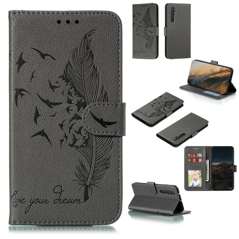 For Xiaomi Note 10 Lite Feather Pattern Litchi Texture Horizontal Flip Leather Case with Wallet & Holder & Card Slots(Grey)