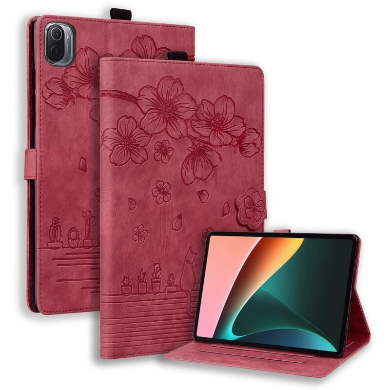 Θήκη ταμπλέτας από δέρμα με ανάγλυφο σχέδιο καρτούν Sakura Cat για Xiaomi Pad 5 / 5 Pro (Πράσινο)