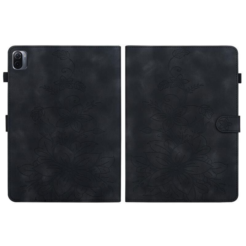 Για Xiaomi Pad 5 / Pad 5 Pro Lily ανάγλυφη δερμάτινη θήκη για έξυπνο tablet (μαύρο)
