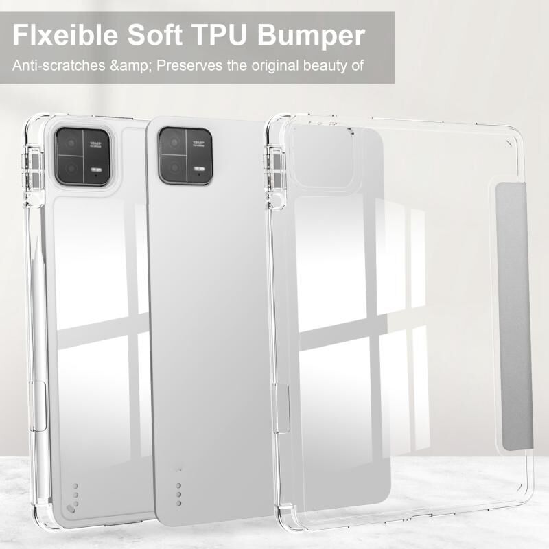 Για Xiaomi Pad 6 / 6 Pro 3-fold Clear TPU Smart Leather Tablet Case (ασημί)