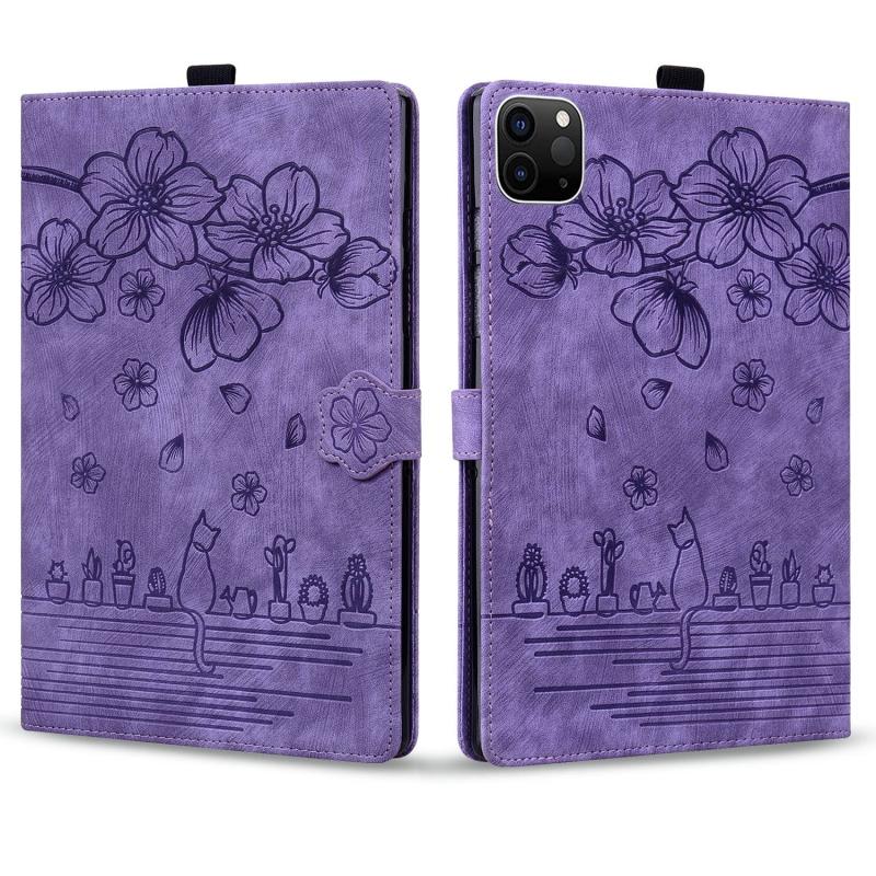 For Xiaomi Pad 6 / 6 Pro Cartoon Sakura Cat Embossed Leather Tablet Case(Purple)