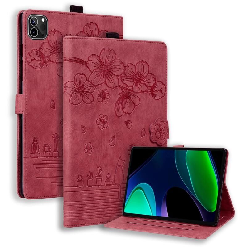 Θήκη ταμπλέτας από δέρμα με ανάγλυφο σχέδιο καρτούν Sakura Cat για Xiaomi Pad 6 / 6 Pro (Πράσινο)