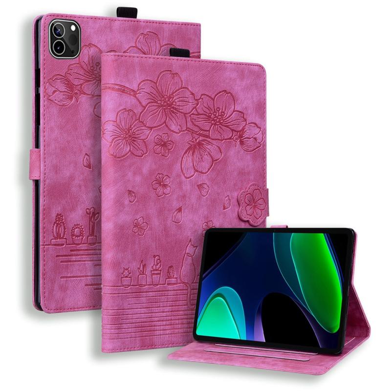 Θήκη ταμπλέτας από δέρμα με ανάγλυφο σχέδιο καρτούν Sakura Cat για Xiaomi Pad 6 / 6 Pro (Πράσινο)