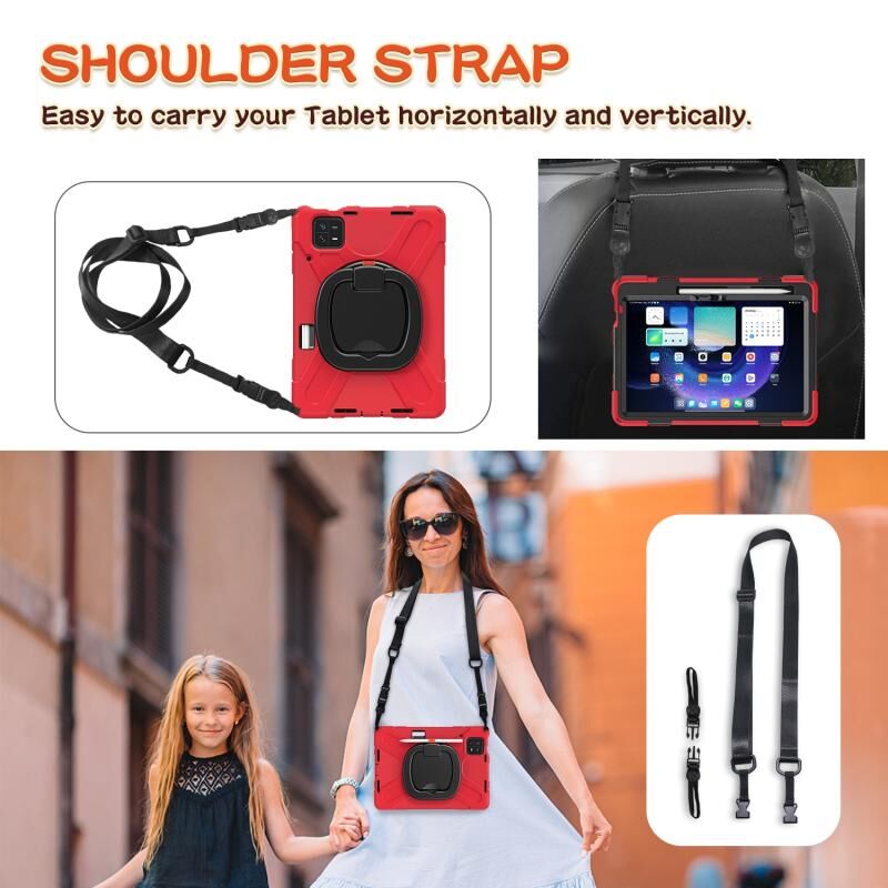 Για Xiaomi Pad 6 / 6 Pro σιλικόνης υβριδικό PC θήκη tablet με θήκη & λουράκι ώμου (κόκκινο)