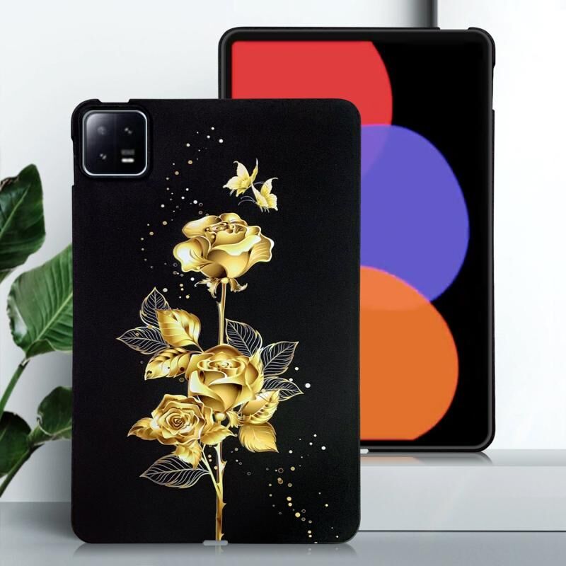 Θήκη για Xiaomi Pad 6 με σχέδιο ζωγραφικής, έξυπνη θήκη από TPU (Χρυσή Ρόδα)