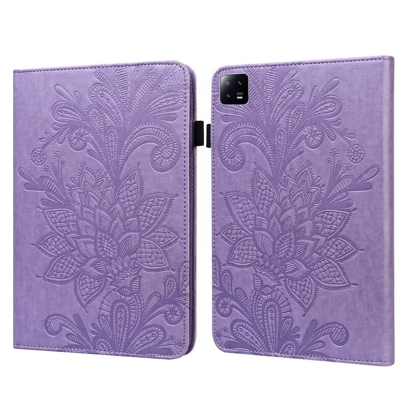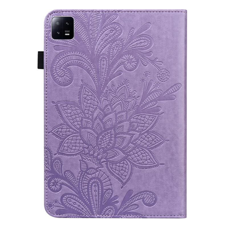 Για Xiaomi Pad 6 Lace Flower ανάγλυφο μοτίβο δερμάτινη θήκη tablet (μωβ)