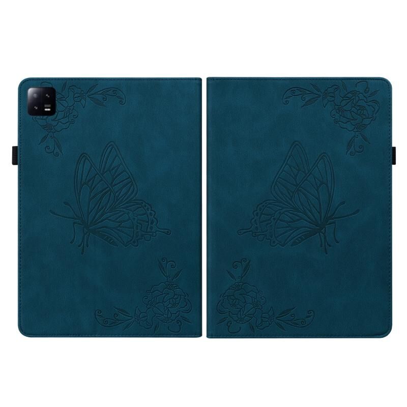 Για Xiaomi Pad 6 / Pad 6 Pro πεταλούδα λουλούδι ανάγλυφη δερμάτινη θήκη tablet (μπλε)