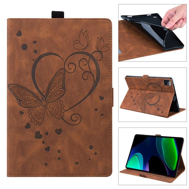 For Xiaomi Pad 6 / Pad 6 Pro Love Butterfly Embossed Leather Tablet Case(Brown)