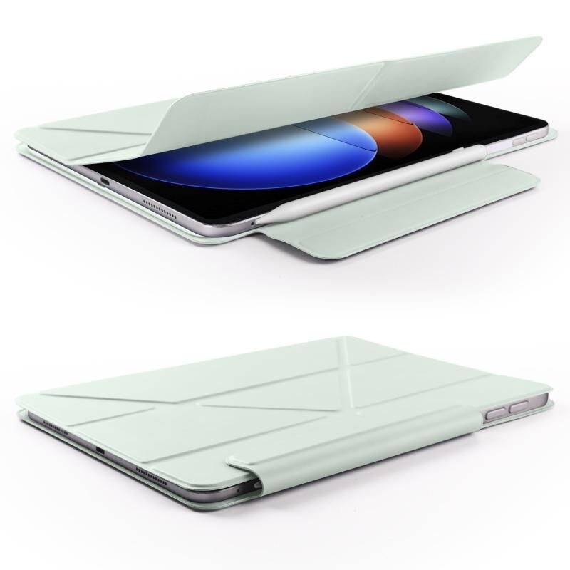 Για Xiaomi Pad 6S Pro 12.4 2024 Σταθερή πόρπη μαγνητική παραμόρφωση δερμάτινη θήκη tablet (Baby Green)