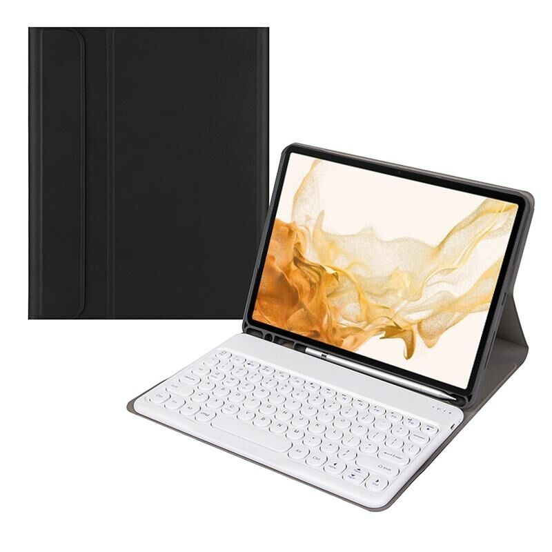 Για Xiaomi Pad 6S Pro 12.4 2024 +X3 Θήκη Bluetooth με Δερμάτινη Επένδυση και Στρογγυλά Πλήκτρα σε Καραμέλα Χρώματα (Μαύρο + Λευκό)