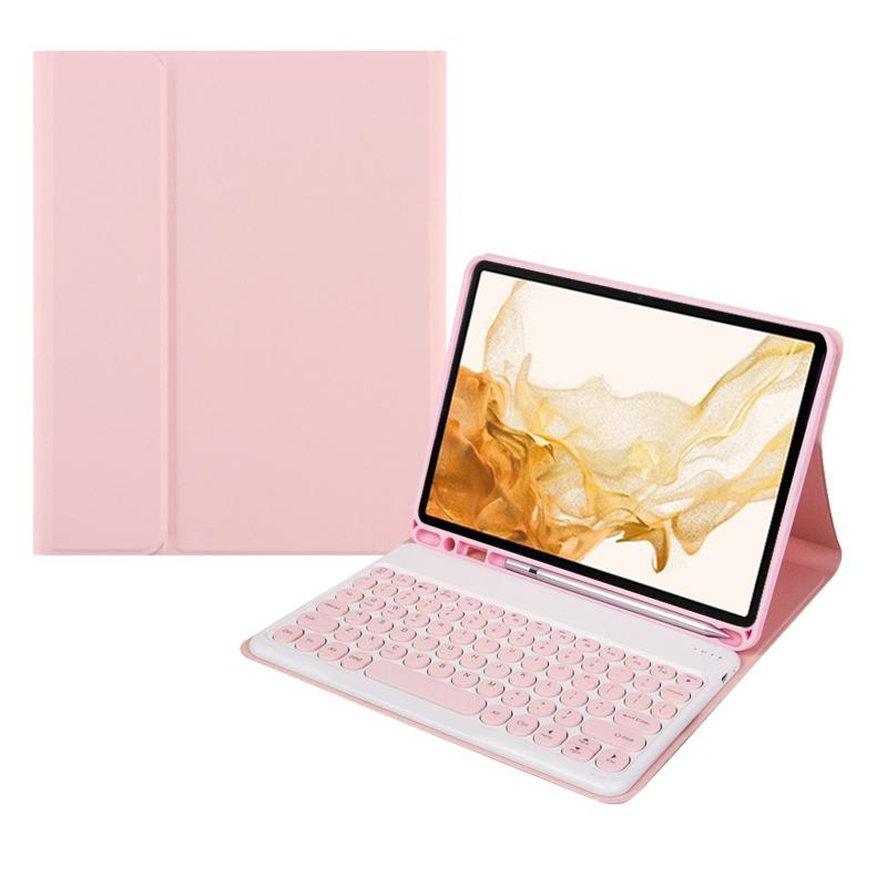 Για Xiaomi Pad 6S Pro 12.4 2024 +X3 Θήκη Bluetooth με Δερμάτινη Επένδυση και Στρογγυλά Πλήκτρα σε Καραμέλα Χρώματα (Ανοιχτό Ροζ)