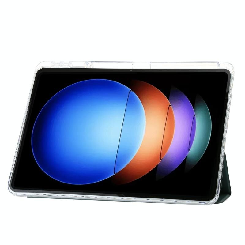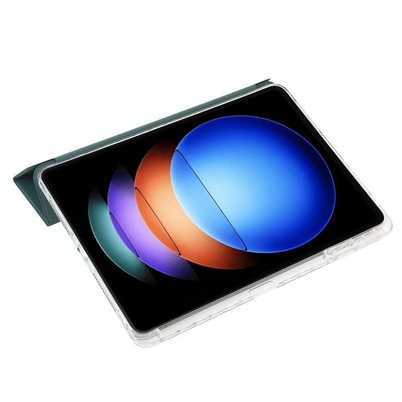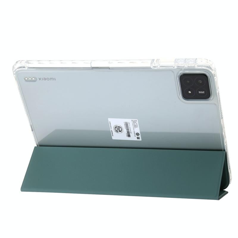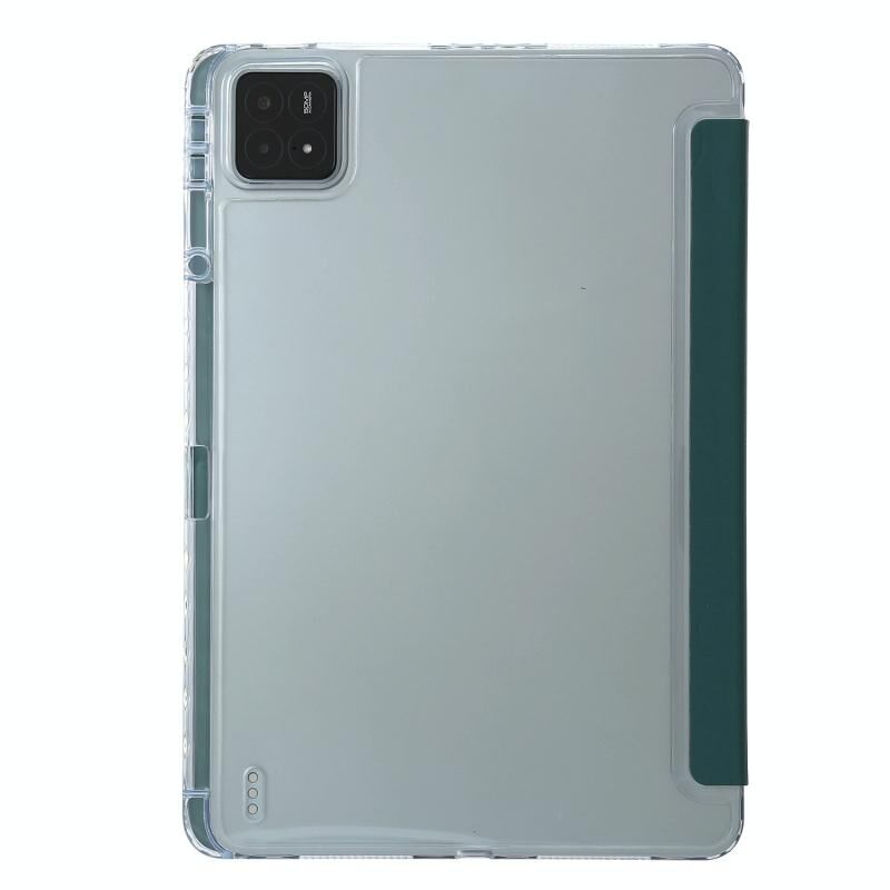 Για το Xiaomi Pad 6S Pro 3-fold Clear Acrylic Leather Tablet Case με υποδοχή για στυλό (σκούρο πράσινο)