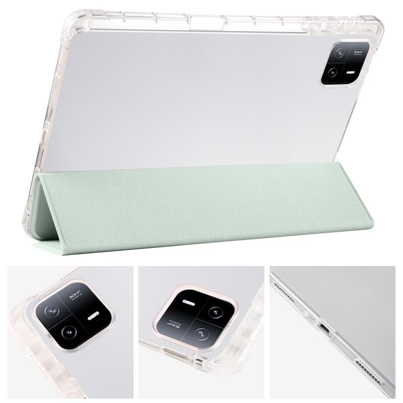 Για το Xiaomi Pad 6S Pro 3-fold Clear TPU Smart Leather Tablet Case με υποδοχή για στυλό (ανοιχτό πράσινο)