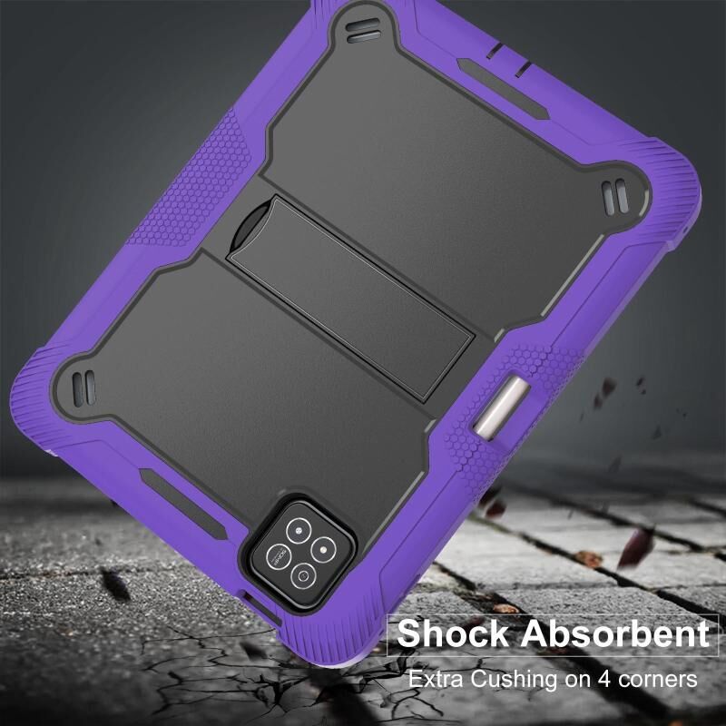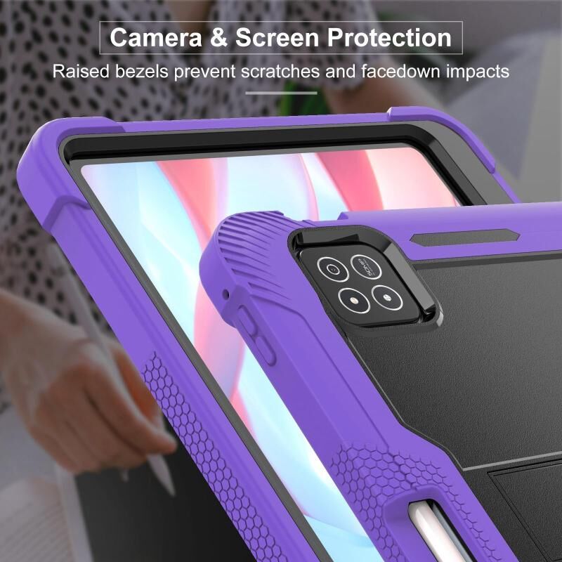 For Xiaomi Pad 7 / 7 Pro Shockproof Silicone Hybrid PC Tablet Case with Holder(Black + Purple)