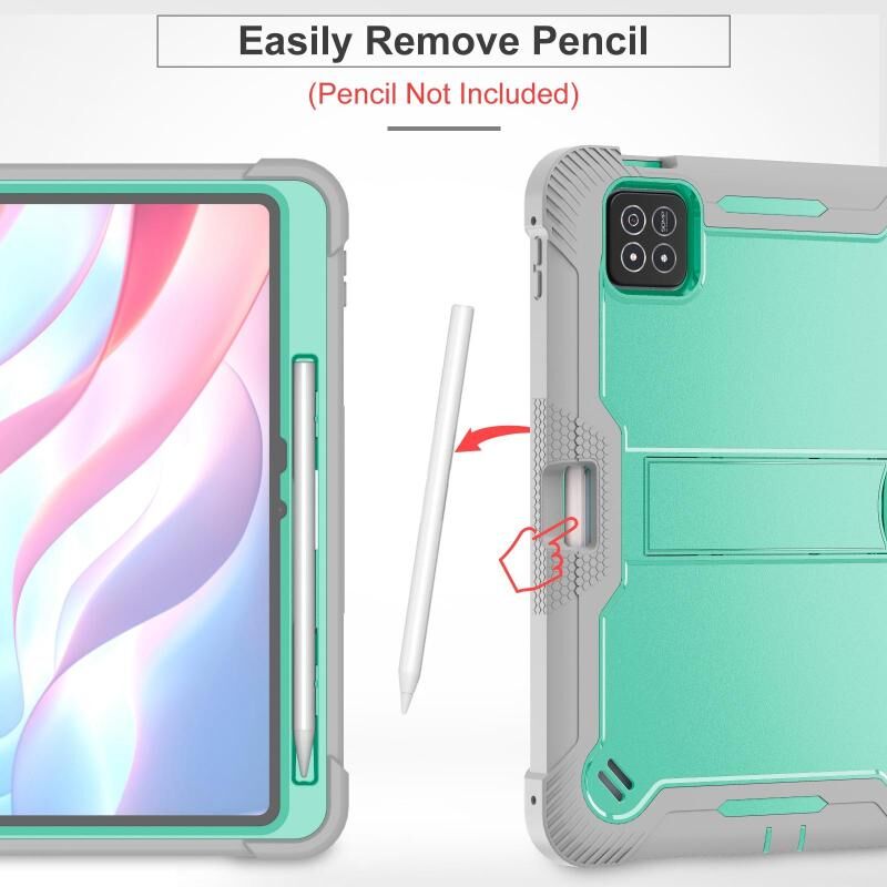 Θήκη ταμπλέτας για Xiaomi Pad 7 / 7 Pro αντικραδασμική, υβριδική σιλικόνης και PC με βάση στήριξης (Μέντα πράσινο + Γκρι)