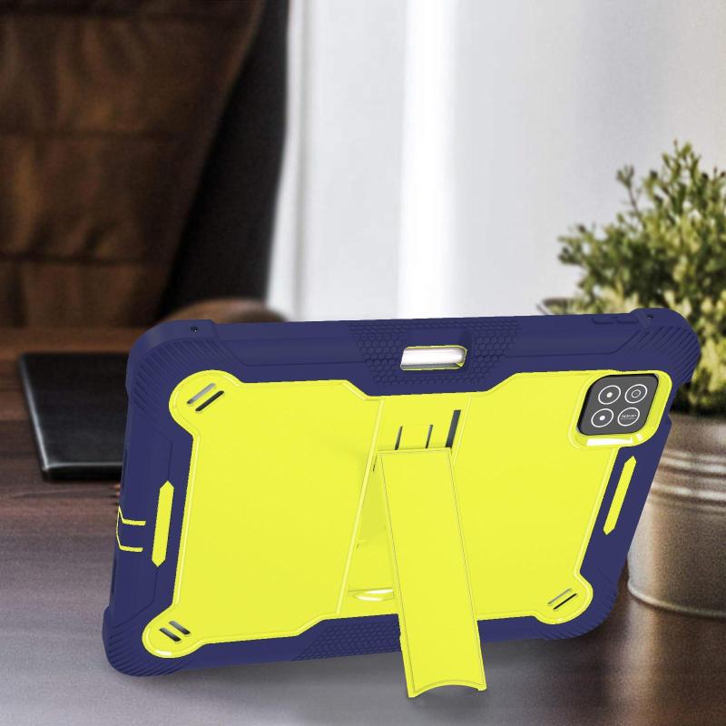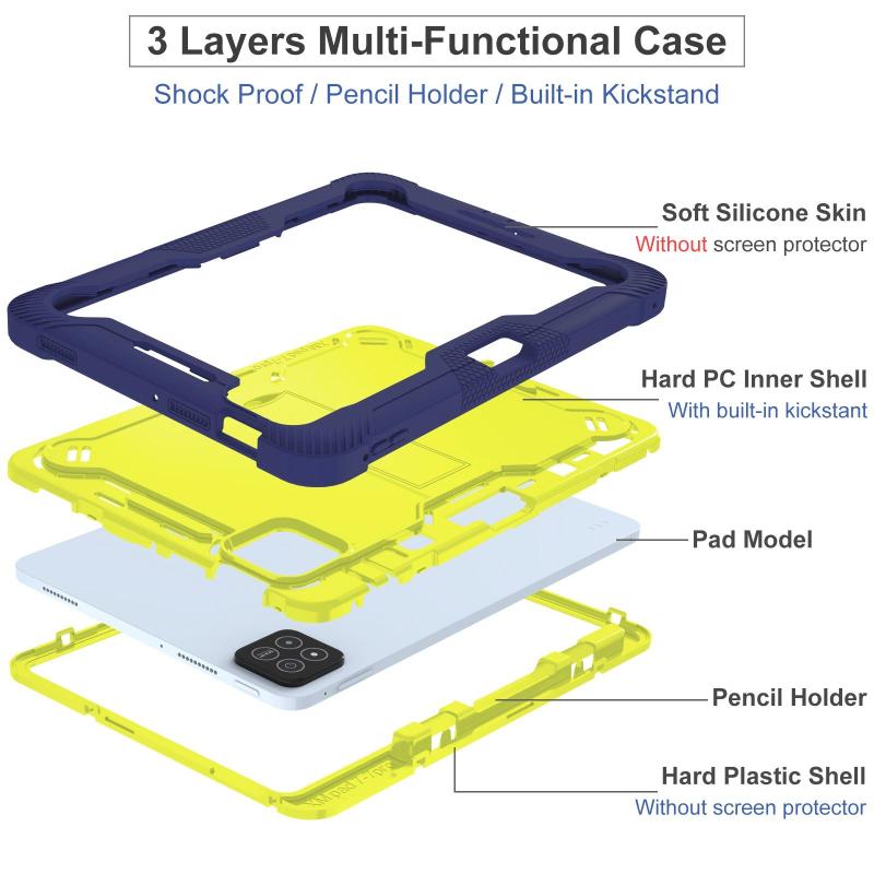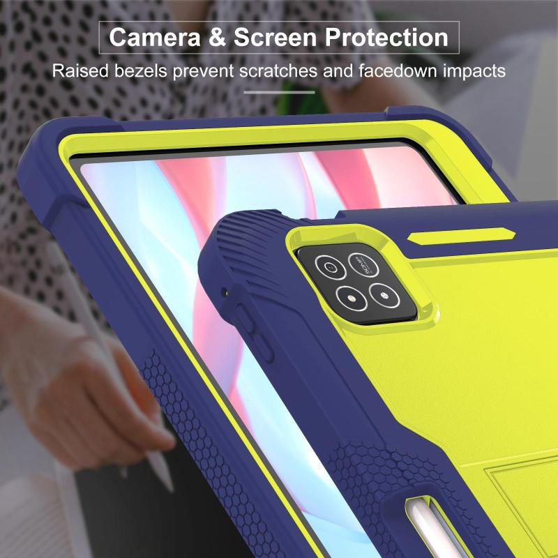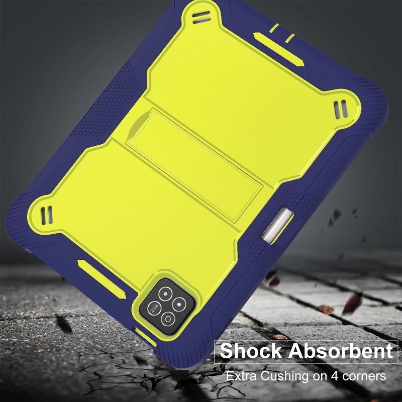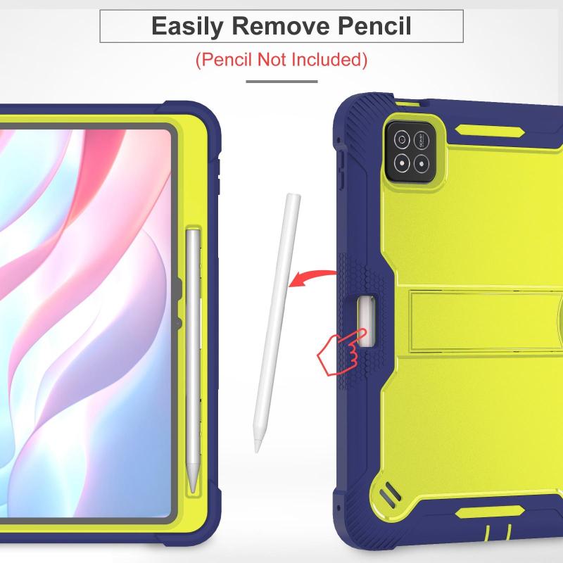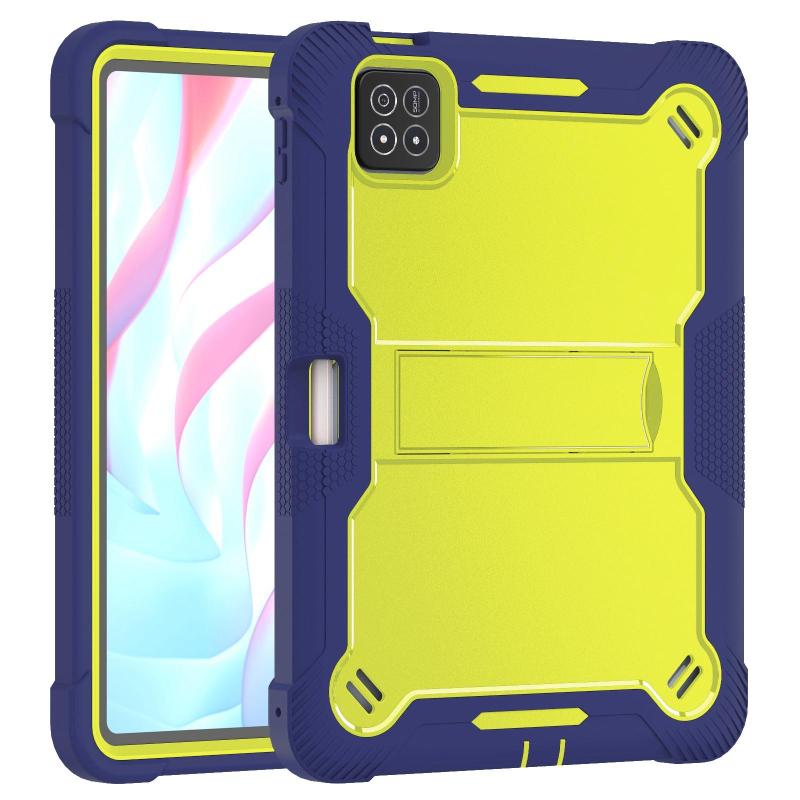 For Xiaomi Pad 7 / 7 Pro Shockproof Silicone Hybrid PC Tablet Case with Holder(Yellow Green + Navy Blue)