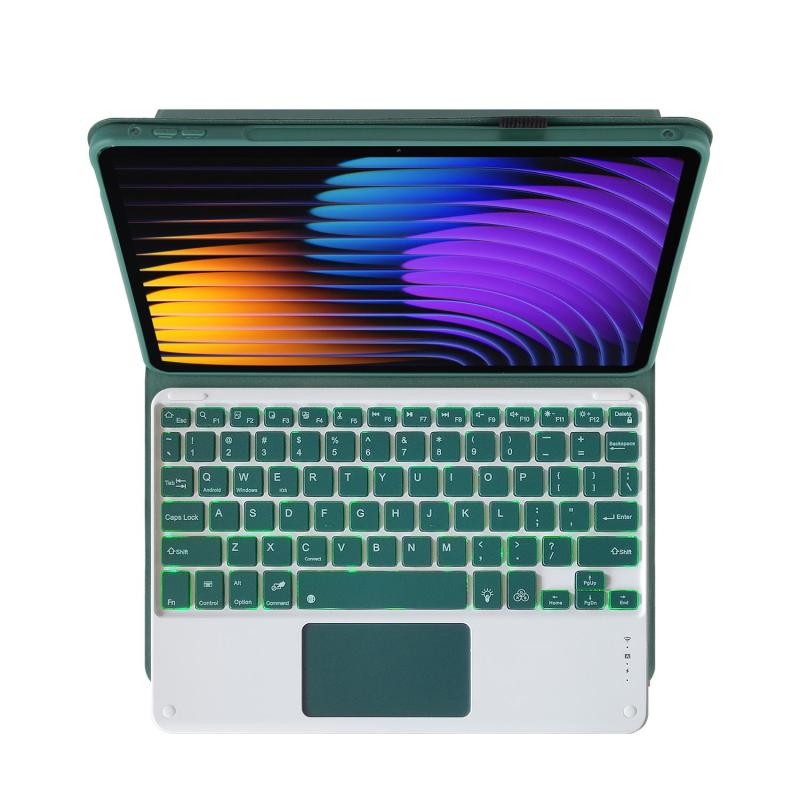 For Xiaomi Pad 7 / Pad 7 Pro 11.2 PST-MI7 Touch Pad Backlight Voltage Keyboard Leather Tablet Case(Dark Green)