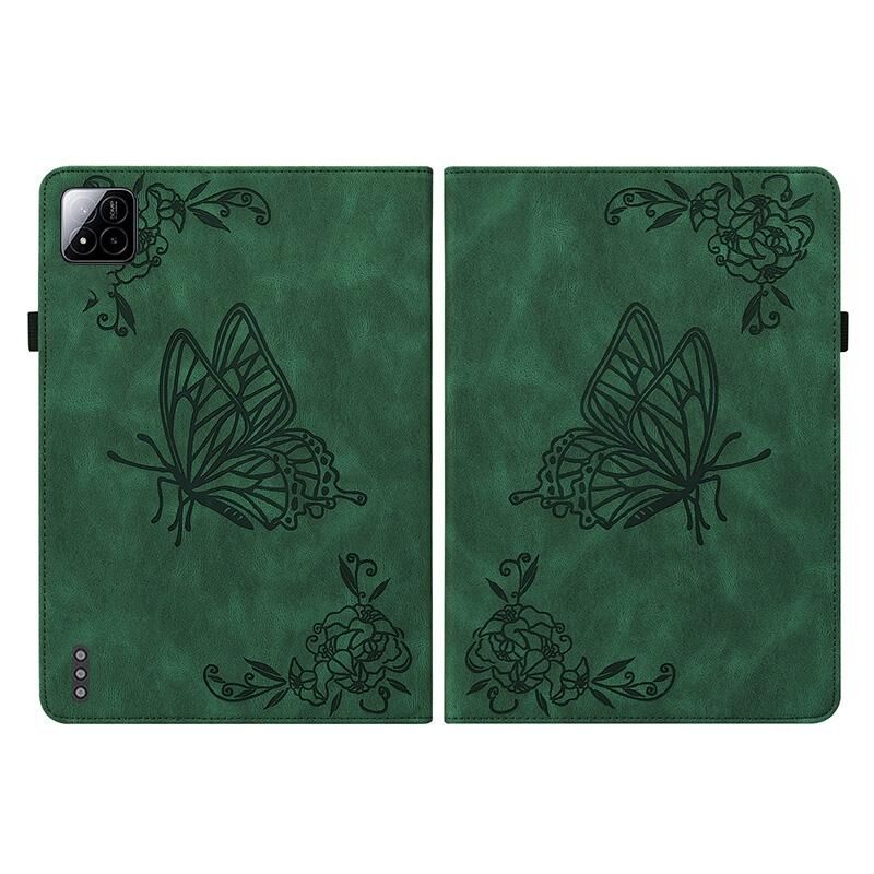 Θήκη ταμπλέτας από δέρμα με ανάγλυφο σχέδιο πεταλούδας και λουλουδιών για Xiaomi Pad 7 / Pad 7 Pro (πράσινο)
