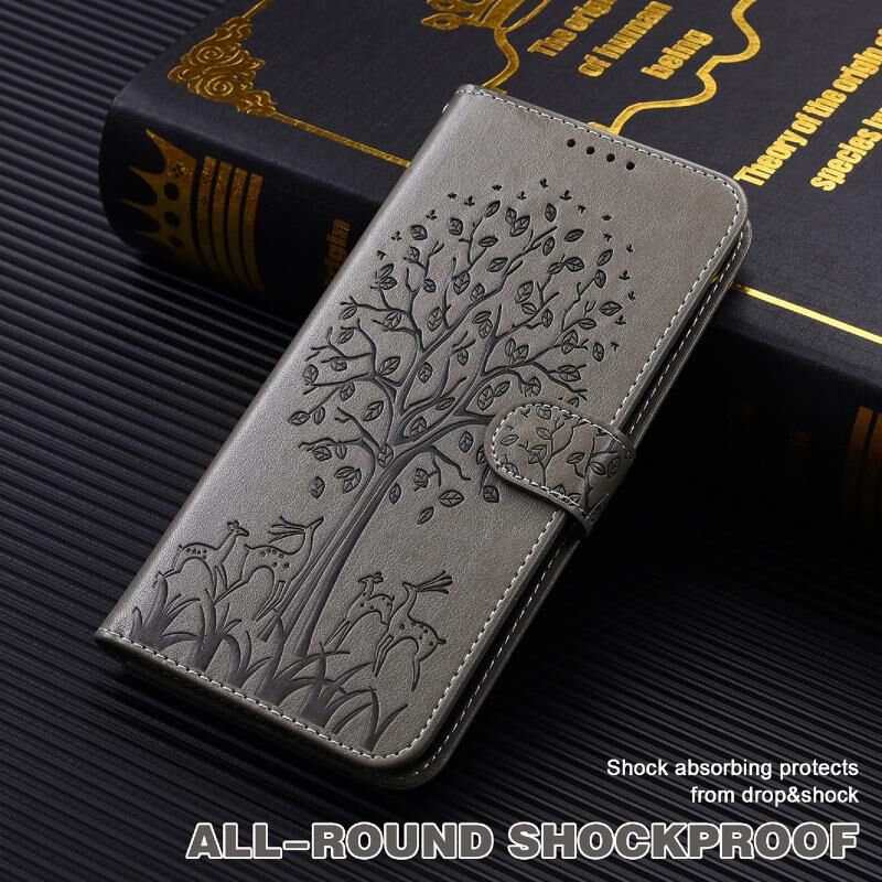 Θήκη τηλεφώνου από δέρμα με σχέδιο δέντρου και ελαφιού, τύπου flip, για Xiaomi Poco C3 / Redmi 9C (Μωβ)