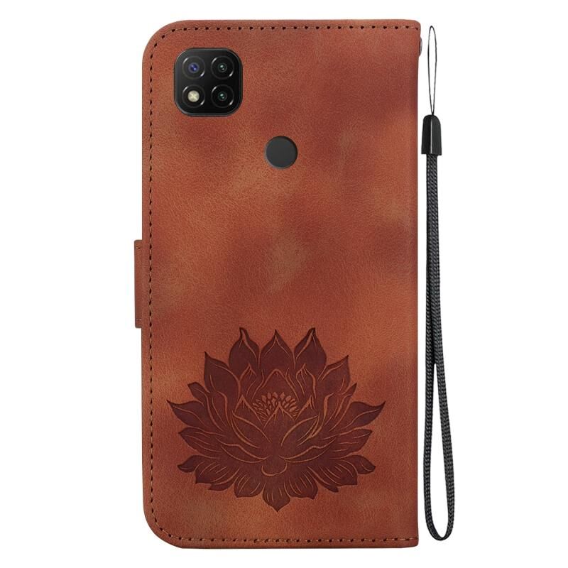 Για Xiaomi Poco C31 Lotus ανάγλυφη δερμάτινη θήκη τηλεφώνου (καφέ)