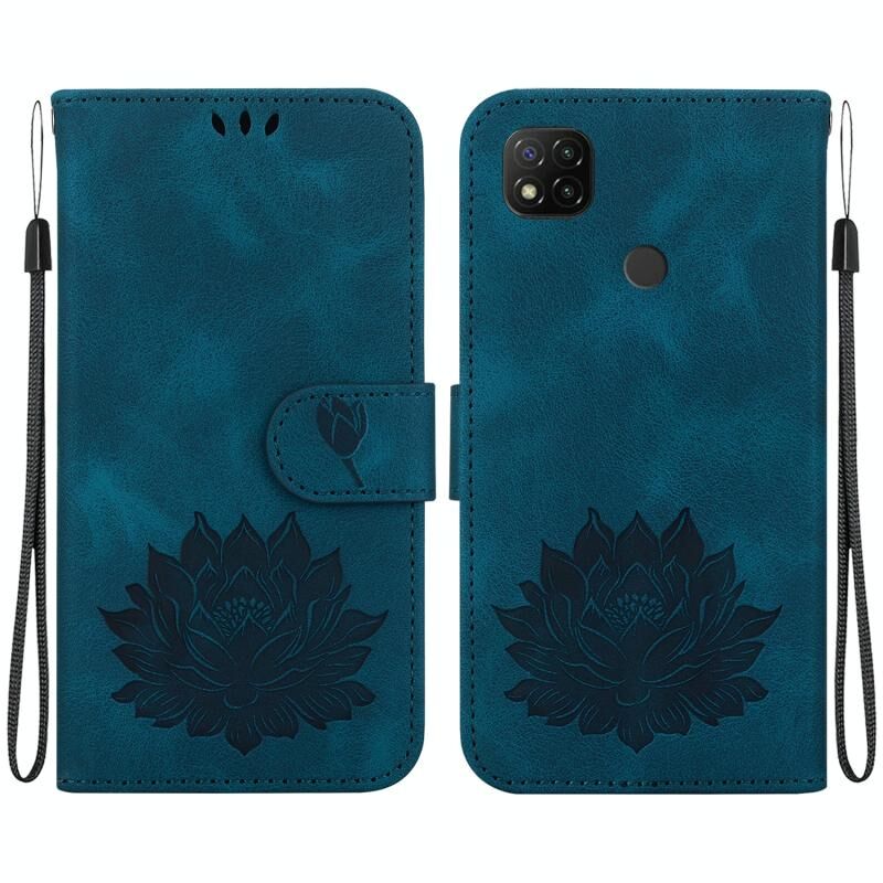Για Xiaomi Poco C31 Lotus ανάγλυφη δερμάτινη θήκη τηλεφώνου (σκούρο μπλε)