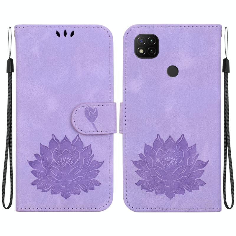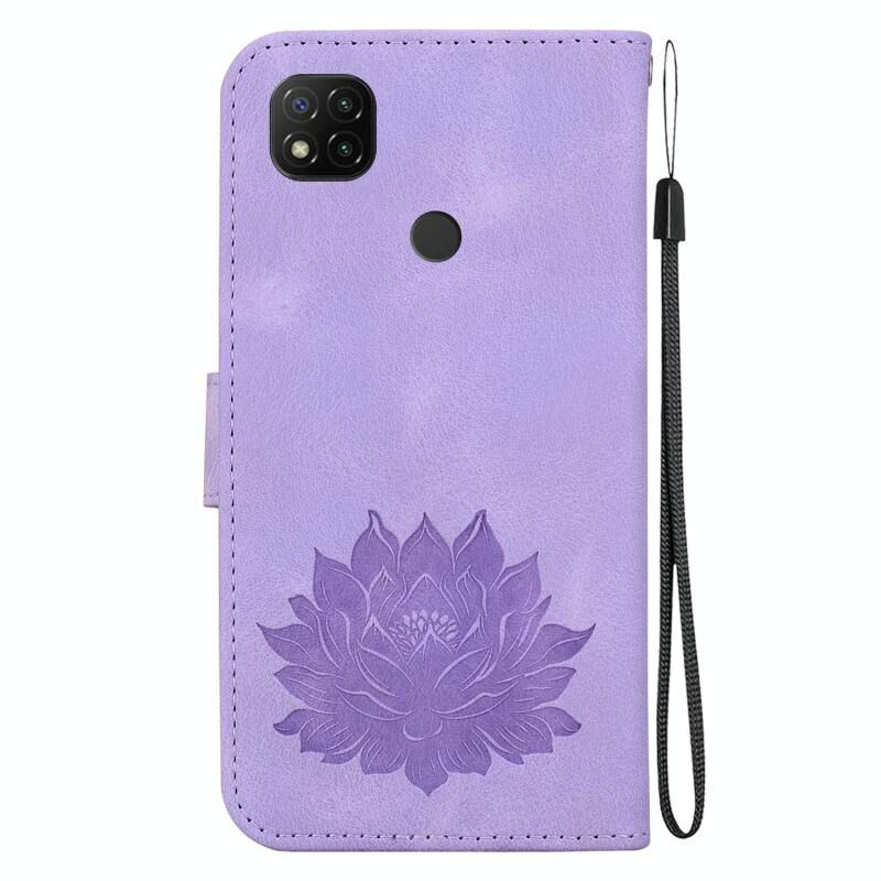 Για Xiaomi Poco C31 Lotus ανάγλυφη δερμάτινη θήκη τηλεφώνου (μωβ)