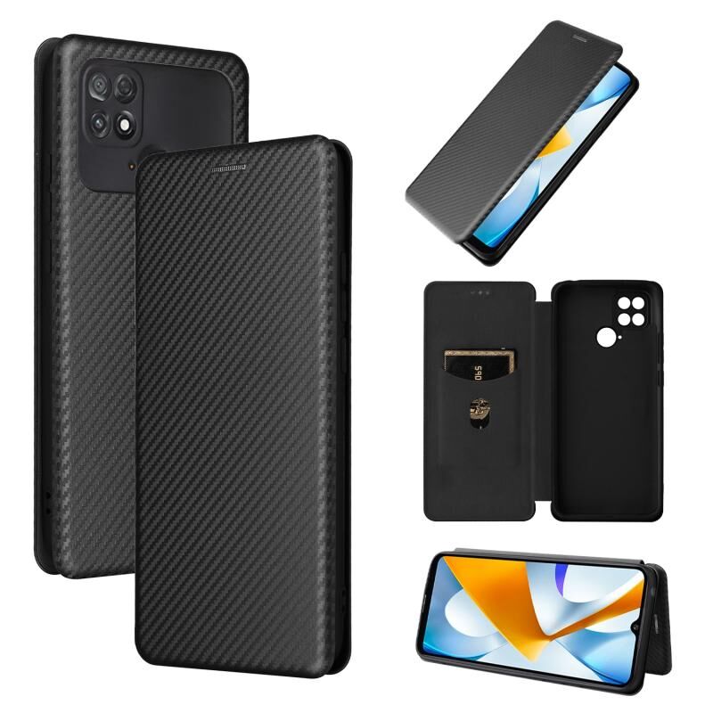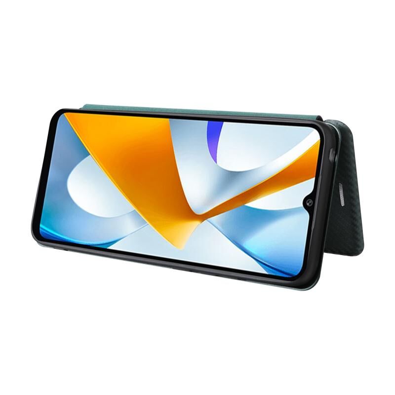 Για Xiaomi Poco C40 Carbon Fiber Texture Δερμάτινη θήκη τηλεφώνου (Μαύρο)