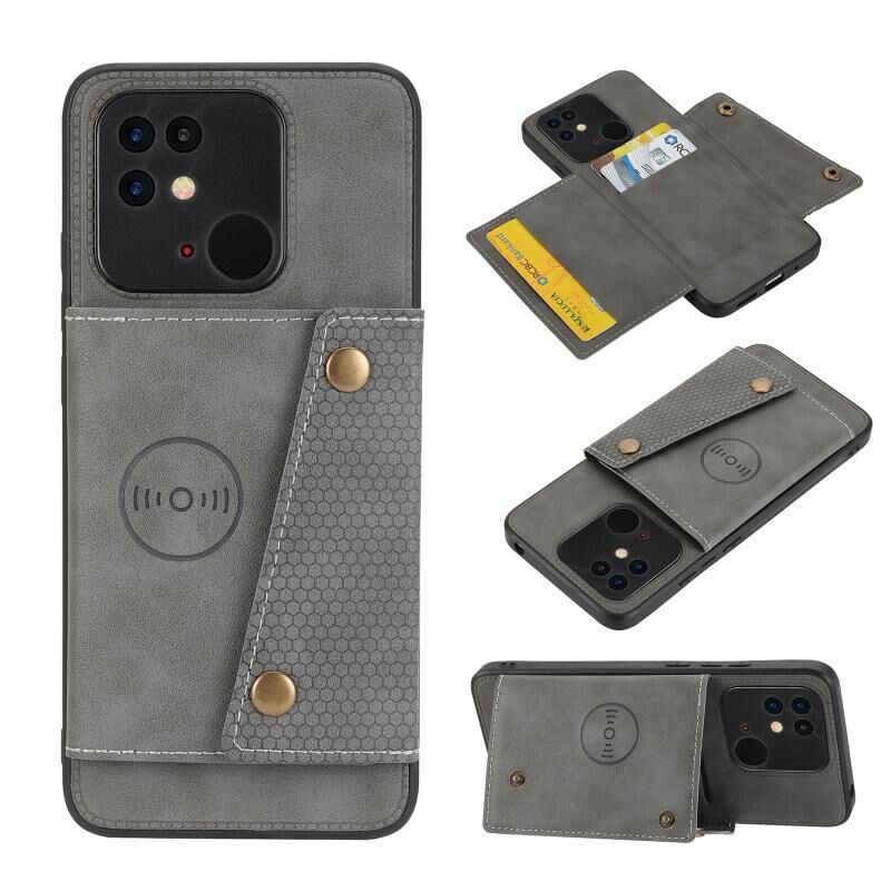 Για Xiaomi Poco C40 Διπλή πόρπη μαγνητική θήκη τηλεφώνου (γκρι)