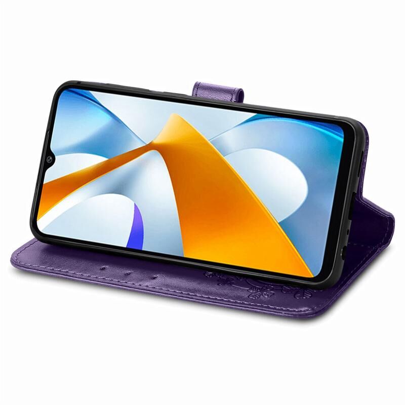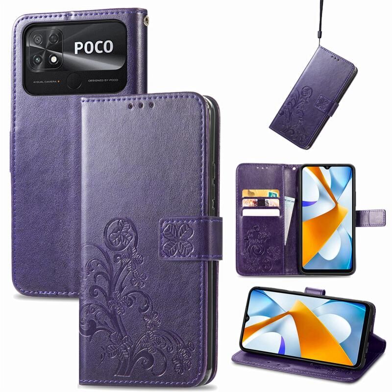 Θήκη τηλεφώνου δερμάτινη με ανάγλυφο κούμπωμα σε σχήμα τριφυλλιού για Xiaomi Poco C40 (Χρυσό ροζ)
