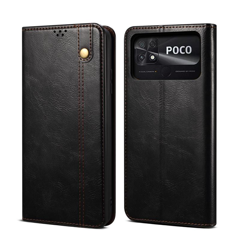 Θήκη δερμάτινη για Xiaomi Poco C40 Global Oil Wax Crazy Horse (Μαύρο)