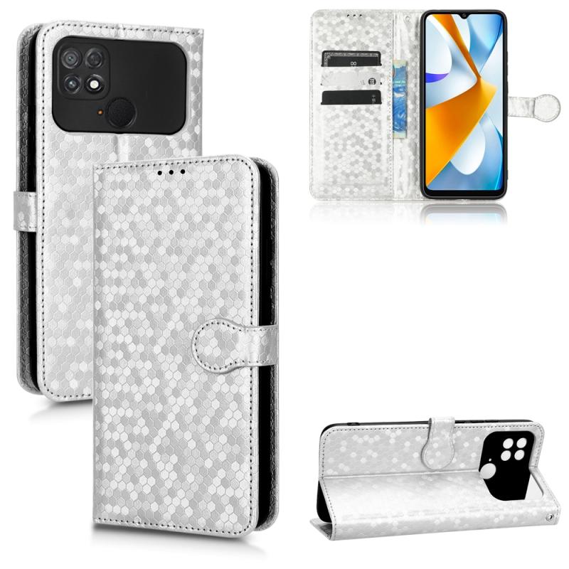For Xiaomi Poco C40 Honeycomb Dot Texture Leather Phone Case(Silver)