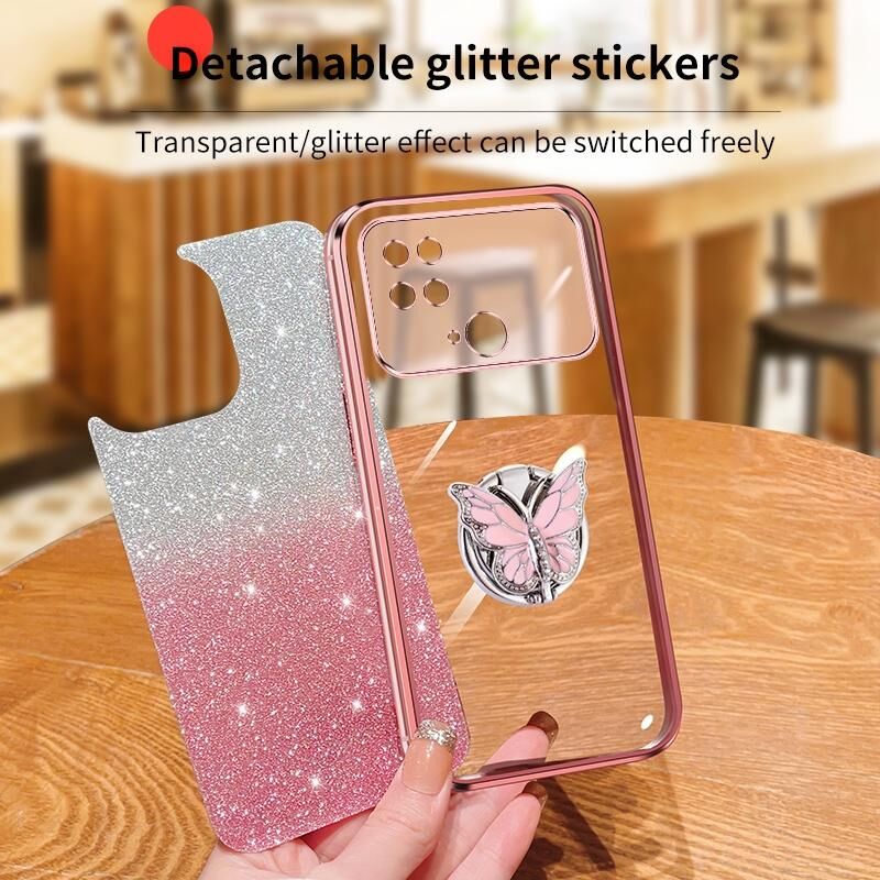 Θήκη κινητού τηλεφώνου TPU με επιμετάλλωση, διαβαθμισμένη λάμψη, πεταλούδα για Xiaomi Poco C40 (Ροζ)
