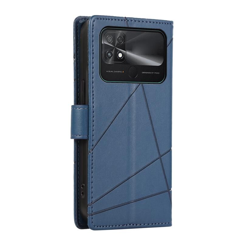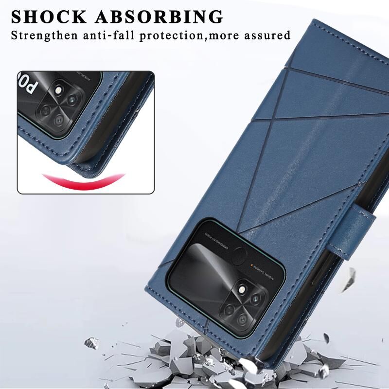 Θήκη τηλεφώνου Xiaomi Poco C40 από γνήσιο δέρμα PU με ανάγλυφη υφή και λεπτομέρειες (Μπλε)