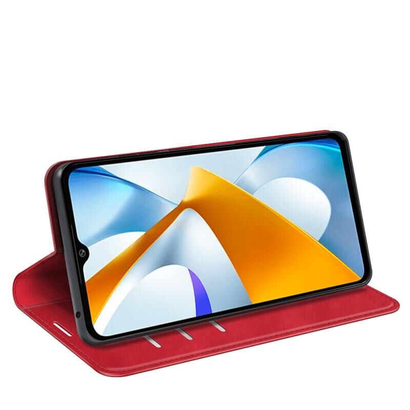 Για Xiaomi Poco C40 Retro-skin μαγνητική δερμάτινη θήκη τηλεφώνου αναρρόφησης (κόκκινο)