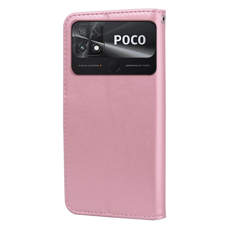 For Xiaomi Poco C40 Rose Embossed Flip PU Leather Phone Case(Rose Gold)