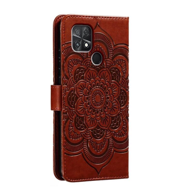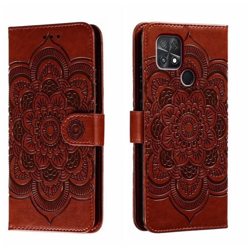 Για Xiaomi Poco C40 Sun Mandala ανάγλυφο μοτίβο τηλέφωνο δερμάτινη θήκη (Καφέ)