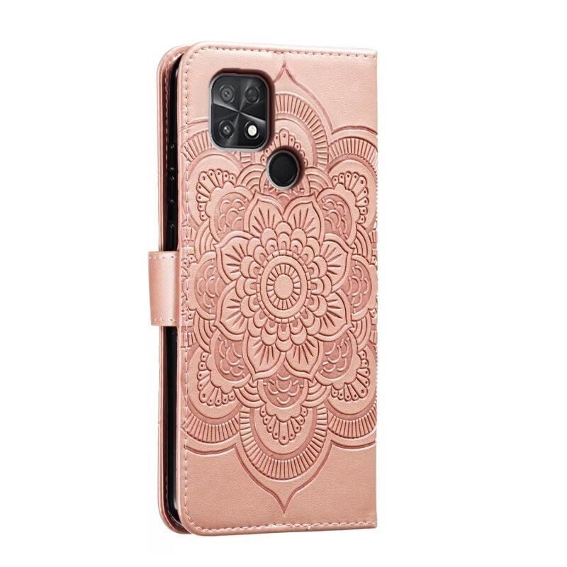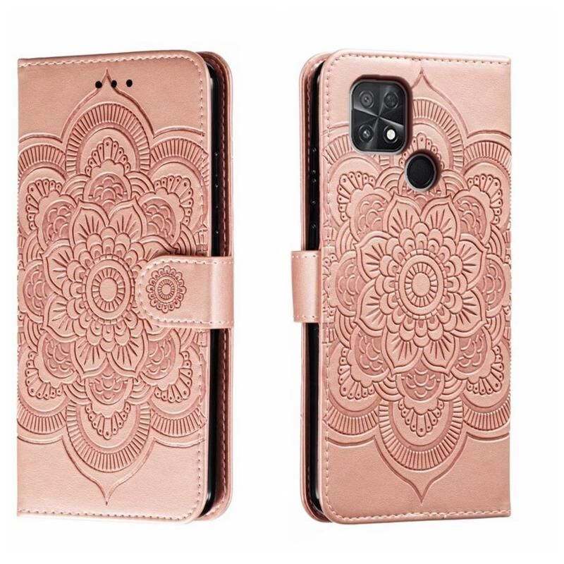 Για Xiaomi Poco C40 Sun Mandala ανάγλυφο μοτίβο τηλέφωνο δερμάτινη θήκη (Ροζ χρυσός)