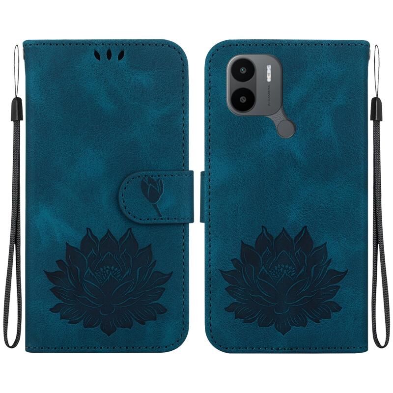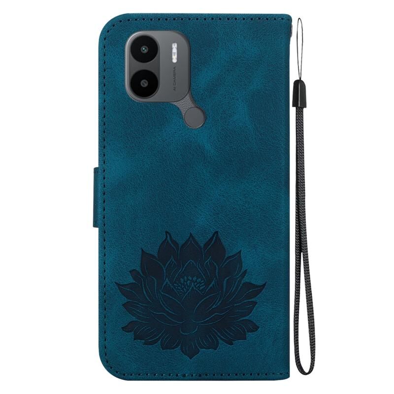 Για Xiaomi Poco C50 / Poco C51 Lotus ανάγλυφη δερμάτινη θήκη τηλεφώνου (σκούρο μπλε)