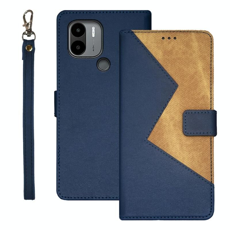 Για Xiaomi Poco C51 idewei Δύο-χρώμα Splicing δερμάτινη θήκη τηλεφώνου (μπλε) (idewei)
