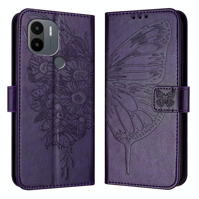 Για Xiaomi Poco C51 / Poco C50 4G ανάγλυφη πεταλούδα δερμάτινη θήκη τηλεφώνου (σκούρο μοβ)