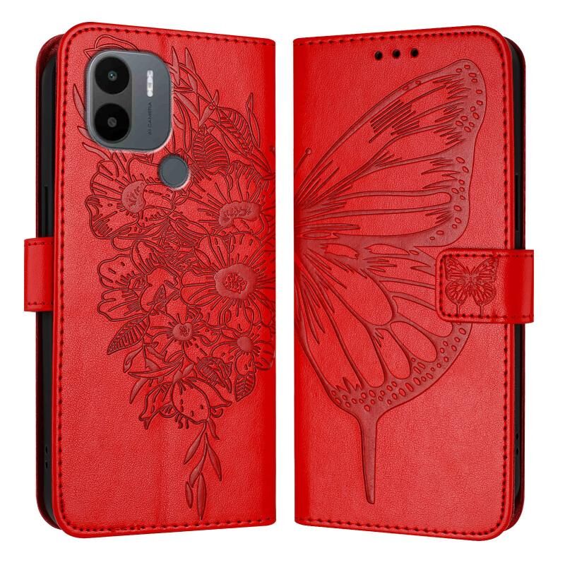 Για Xiaomi Poco C51 / Poco C50 4G ανάγλυφη θήκη τηλεφώνου με δέρμα πεταλούδας (κόκκινο)