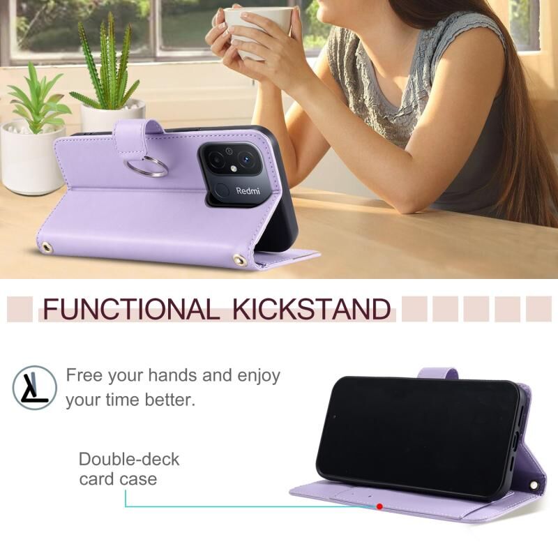 Για Xiaomi Poco C55 Δαχτυλίδι πόρπη ρομβοειδής δερμάτινη θήκη τηλεφώνου (μωβ)