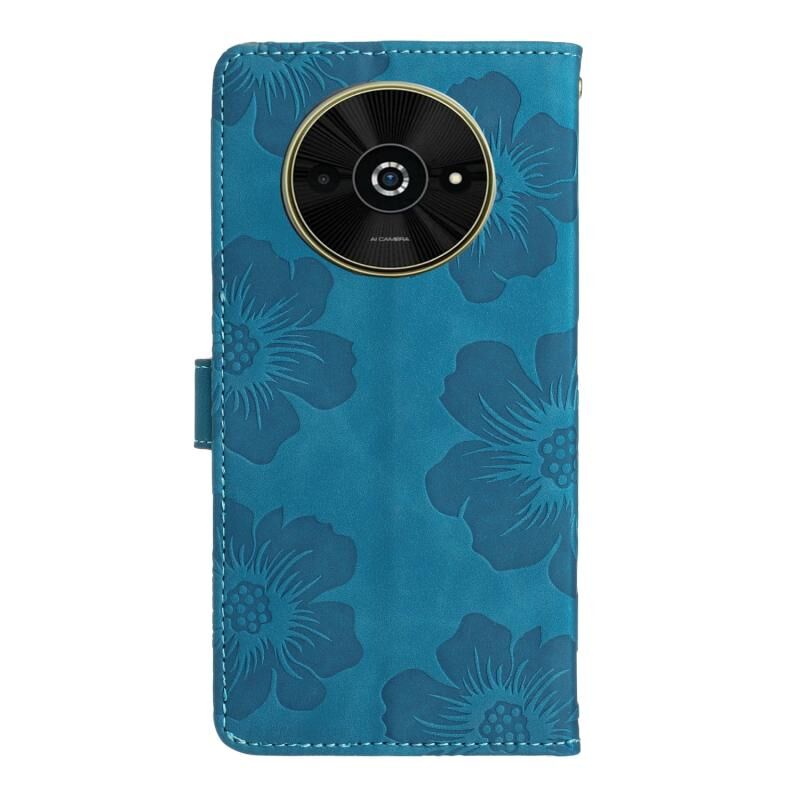 Για Xiaomi Poco C61 λουλούδι ανάγλυφο μοτίβο δερμάτινη θήκη τηλεφώνου (μπλε)