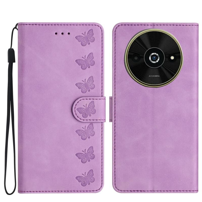 Θήκη τηλεφώνου από δέρμα με ανάγλυφο σχέδιο επτά πεταλούδων για Xiaomi Poco C61 (Καφέ)