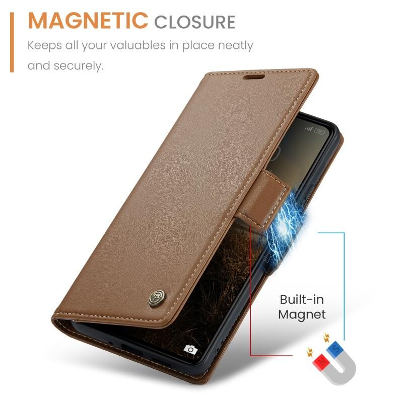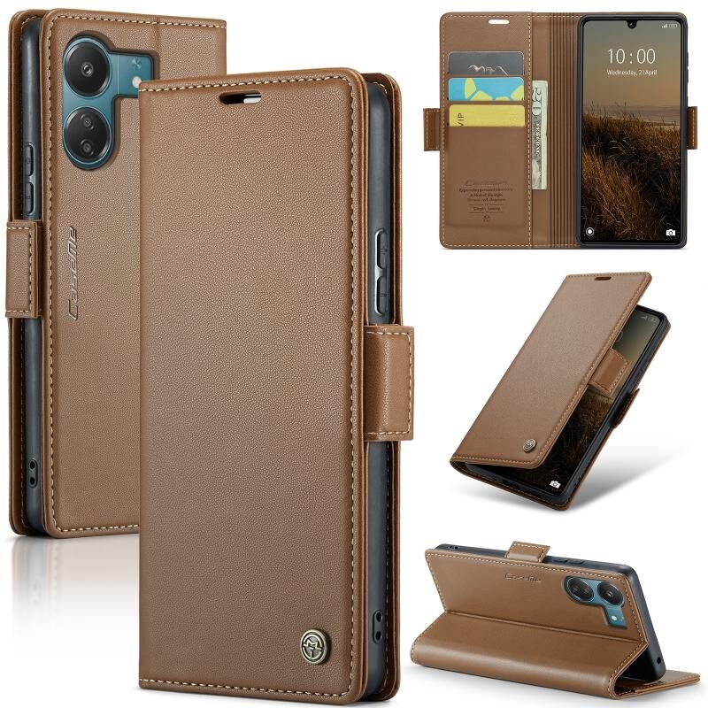 Για Xiaomi Poco C65 4G CaseMe 023 Πεταλούδα Πόρπη Litchi Υφή RFID Anti-theft Δερμάτινη θήκη τηλεφώνου (καφέ) (Καφέ)