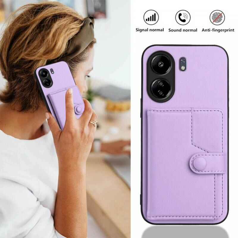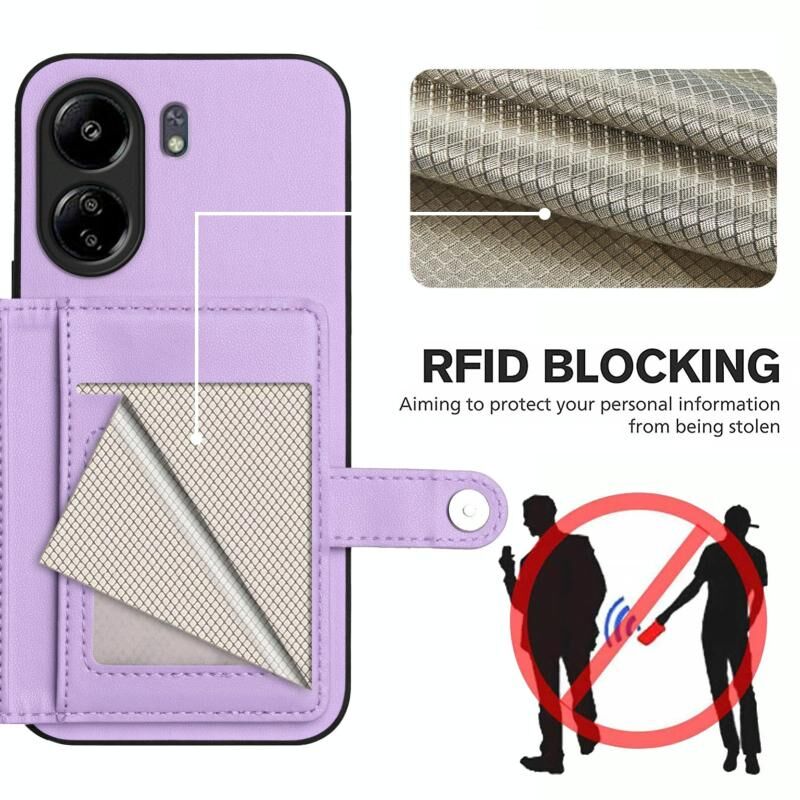 Για Xiaomi Poco C65 Button Card Bag RFID Anti-theft τηλέφωνο υπόθεση (μωβ)